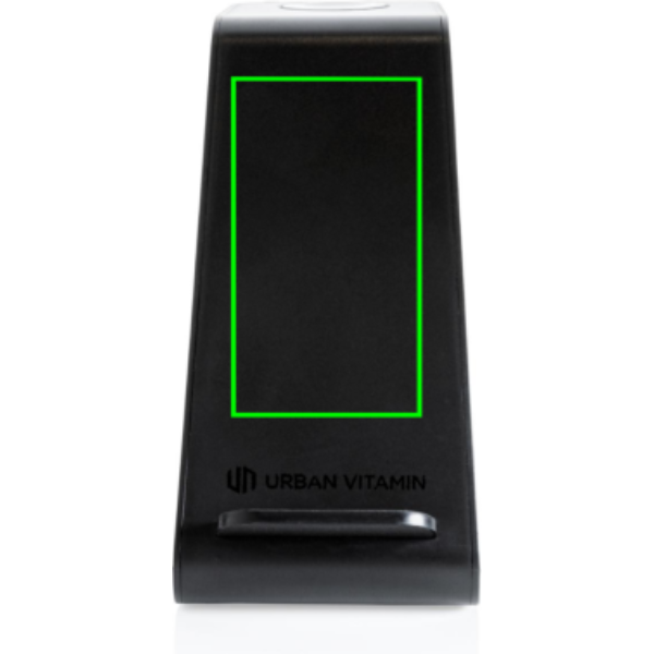 Base di ricarica wireless 3 in 1 da 15W realizzata con ABS riciclato certificato RCS (Recycled Claim Standard). Contenuto totale riciclato: 60 % in base al peso totale dell'articolo. La certificazione RCS garantisce una filiera completamente certificata dei materiali riciclati. Ricarica il tuo telefono nel modo più veloce possibile. Il caricabatterie è dotato di un caricabatterie wireless dual coil 15W, un caricabatterie wireless da 5W sul retro e sopra un caricabatterie iWatch da 3W. Include cavo di ricarica di type C da 120 cm in TPE riciclato certificato RCS. Gli articoli Urban Vitamin sono realizzati senza PVC e confezionati in imballaggi ridotti in plastica. Input 5V/3A, 9V/2A 5V/1A, 9V/1.1A V/1,1 A
