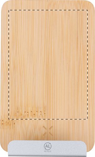 Supporto per cellulare da scrivania in bambù e alluminio riciclato, con caricatore rapido wireless integrato (15W). Cavo di ricarica USB compreso.