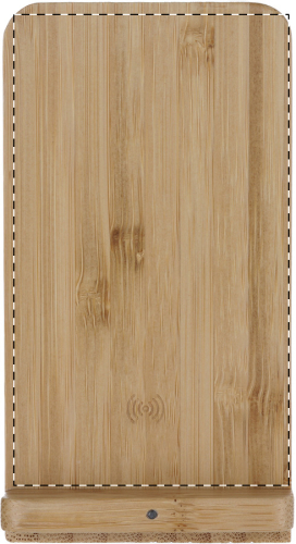 Supporto da tavolo per cellulare in bambù con caricabatterie wireless integrato (10W). Cavo di ricarica USB incluso.