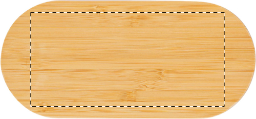 Caricatore rapido wireless a doppia bobina (15W) con struttura in bambù e plastica trasparente, componenti elettronici a vista. Cavo di ricarica USB incluso.