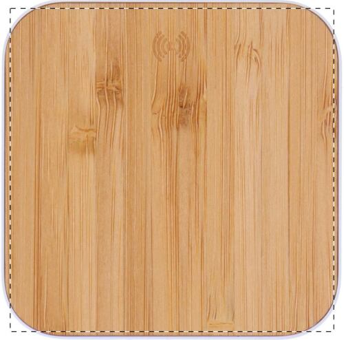 Supporto per cellulare in ABS riciclato con caricabatterie rapido wireless incorporato rivestito in bambù (15W). Cavo di ricarica USB compreso.