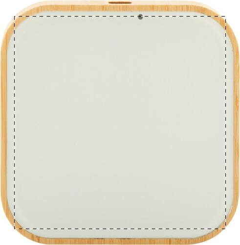 Caricabatterie rapido wireless (10W) con corpo in bambù e superficie in vetro temperato. Cavo di ricarica USB incluso.
