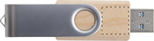 Chiavetta USB2.0 twist OTG in bambù e metallo con memoria da 4/8/16/32 GB. Connessioni USB e USB-C, confezionata in scatola di cartoncino kraft.