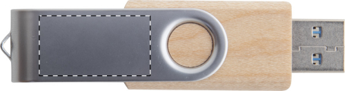 Chiavetta USB2.0 twist OTG in bambù e metallo con memoria da 4/8/16/32 GB. Connessioni USB e USB-C, confezionata in scatola di cartoncino kraft.
