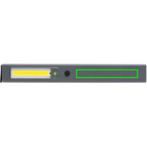 Luce da ispezione tascabile realizzata con plastica ABS riciclata certificata RCS. Contenuto riciclato totale: 33% in base al peso totale dell'articolo. La certificazione RCS garantisce una filiera completamente certificata dei materiali riciclati. La lampada da lavoro utilizza una batteria al litio ricaricabile di grado A da 520 mAh per cui non è necessario sostituire le batterie. È sufficiente ricaricarla tramite la presa USB e la base di ricarica inclusa. La lampada da lavoro è dotata di luce COB da 220 lumen e di una luce LED da 80 lumen. Con 3 modalità: LED, COB e COB rosso. Include clip per cintura e magnete. Con porta Type-C per la ricarica. Autonomia con una carica: 3 ore.
