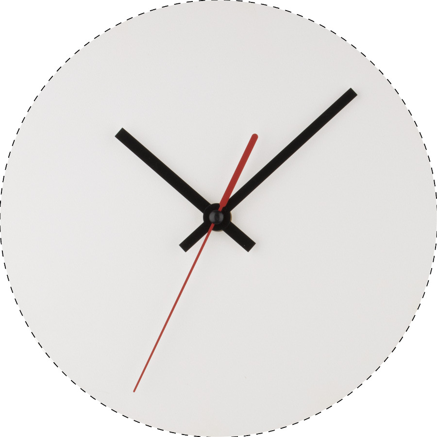 Orologio da parete di forma rotonda in legno HDF con grafica personalizzata. Funziona con 1 batteria AA, non fornita. MOQ: 50 pz.