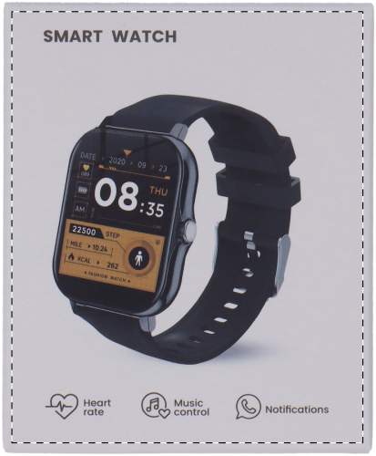 Orologio intelligente wireless multifunzionale con custodia in metallo, schermo touch screen TFT da 1,44", batteria ricaricabile da 150 mAh e cinturino in silicone. Dispone di diverse funzioni intelligenti e di monitoraggio della salute, come la frequenza cardiaca, la pressione sanguigna e il monitoraggio dell'ossigeno, oltre a molte altre. Può essere collegato agli smartphone con un'applicazione gratuita disponibile per iOS e Android. Include un cavo di ricarica USB. Resistente all'acqua IP65.