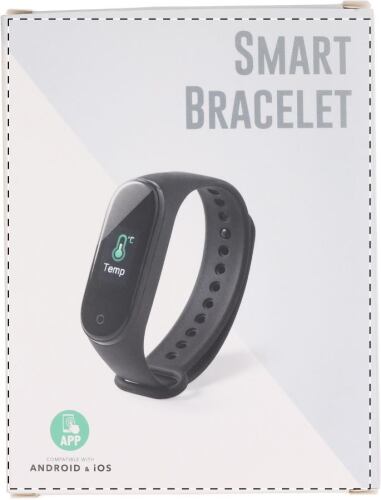 Orologio smart multilingue e wireless con termometro e cardiofrequenzimetro, schermo TFT da 0,96" e cinturino in TPU. Con cavo di ricarica USB.