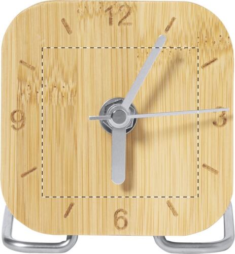 Orologio da tavolo in bambù e acciaio inox. Funziona con 1 batteria AA, non fornita.