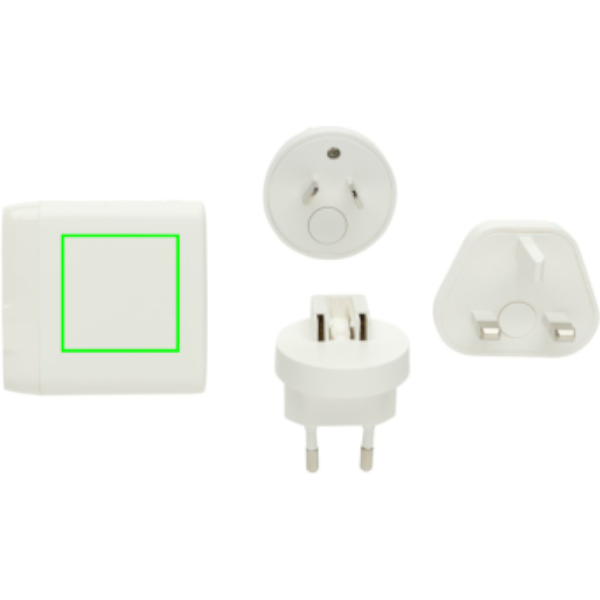Ricarica ovunque tu vada con Travelcharge Pro. È dotato di 2 porte type C e 2 porte USB A per ricaricare qualsiasi dispositivo mobile portato in viaggio. Con connettore integrato per gli Stati Uniti e connettori aggiuntivi per l'UE, il Regno Unito e l'Australia per ricaricare in più di 100 paesi in tutto il mondo. Output massimo: 5V/3A. Input: AC100-240V. L'adattatore viene fornito in una comoda custodia da viaggio per portarlo in qualsiasi destinazione. Il caricabatterie è realizzato in ABS riciclato. Contenuto totale riciclato: 57% in base al peso totale dell'articolo. La certificazione RCS garantisce una catena di approvvigionamento completamente certificata dei materiali riciclati. Senza PVC. Confezionato in scatola FSC® mix.