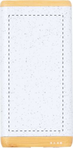 Power bank USB in bambù e plastica ecologica di paglia di grano con batteria da 5000 mAh, porta di ingresso USB-C, 1 porta di ricarica USB e 1 USB-C. Cavo di ricarica USB incluso.