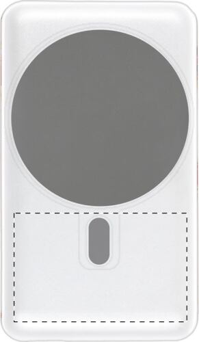 Power bank USB in plastica ABS con ricarica solare integrata, caricabatterie rapido wireless magnetico (15W) e batteria da 8000 mAh. Con 2 porte di ricarica USB e 1 USB-C. Porta di ingresso USB-C. Comprende un anello metallico autoadesivo che permette l'utilizzo della funzione magnetica su qualsiasi dispositivo ricaricabile in modalità wireless. Fornito con cavo USB per la ricarica.