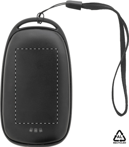 Scaldamani elettrico in alluminio riciclato con 3 livelli di intensità e power bank integrato da 4000 mAh. Con porte di ricarica USB e USB-C e porta di ingresso USB-C. Cavo di ricarica USB incluso