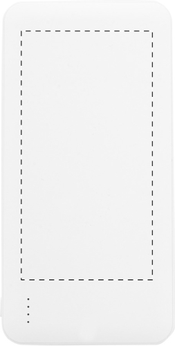 Power bank in plastica ABS riciclata con batteria da 10000 mAh. Con 2 porte di ricarica USB e 1 USB-C e porte di ingresso micro USB e USB-C. Cavo di ricarica USB incluso.