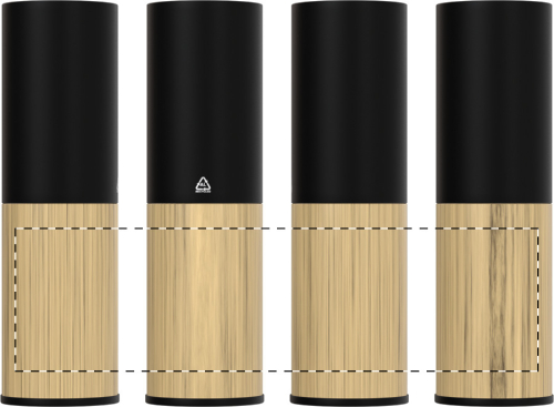 Power bank in alluminio riciclato e bambù con batteria da 2600 mAh, 1 porta di ricarica USB, 1 USB-C e porta di ingresso USB-C. Cavo di ricarica USB incluso.