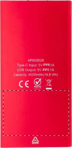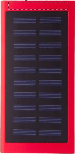 Power bank USB in alluminio riciclato con caricatore solare integrato, batteria da 4000 mAh e con 2 porte di ricarica USB e 1 USB-C. Porta di ingresso USB-C. Cavo di ricarica USB incluso.