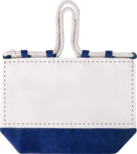 Borsa da spiaggia bicolore in juta e cotone con manici in corda intrecciata, 280 g/m².