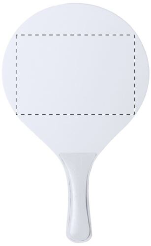 Beach tennis con 2 grandi racchette e una pallina, in legno e plastica.