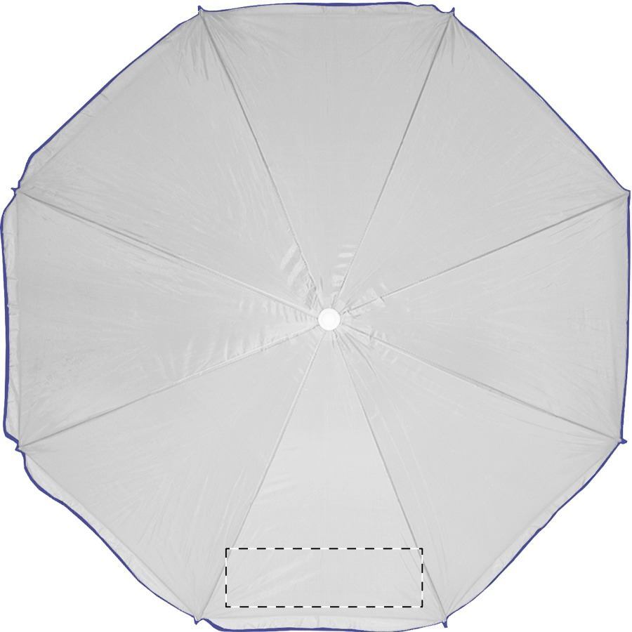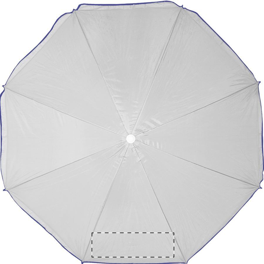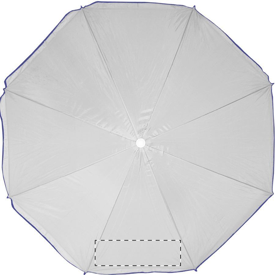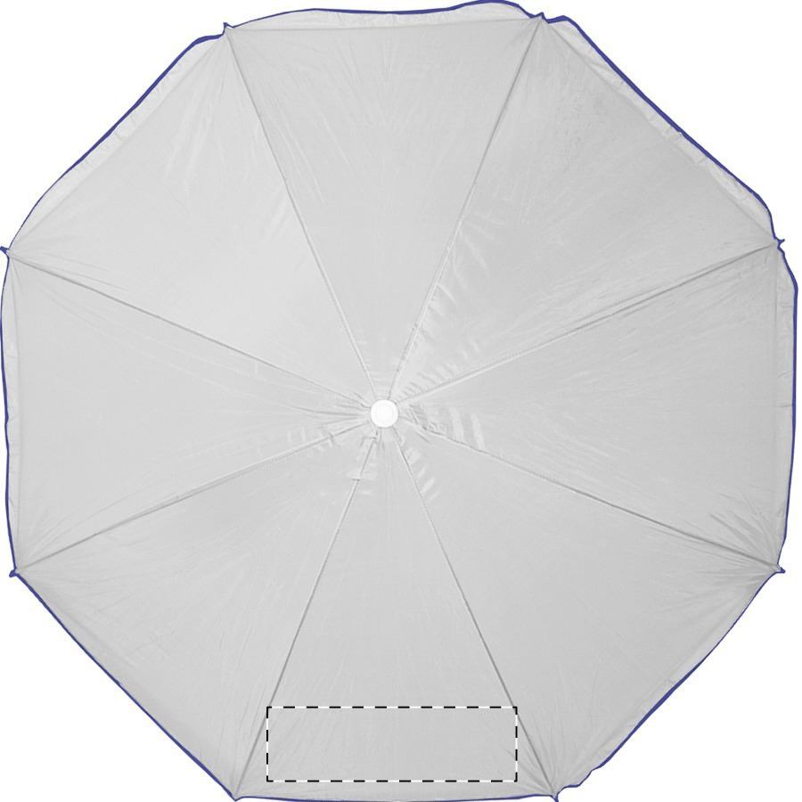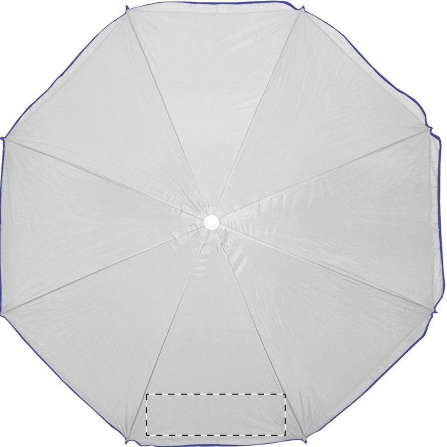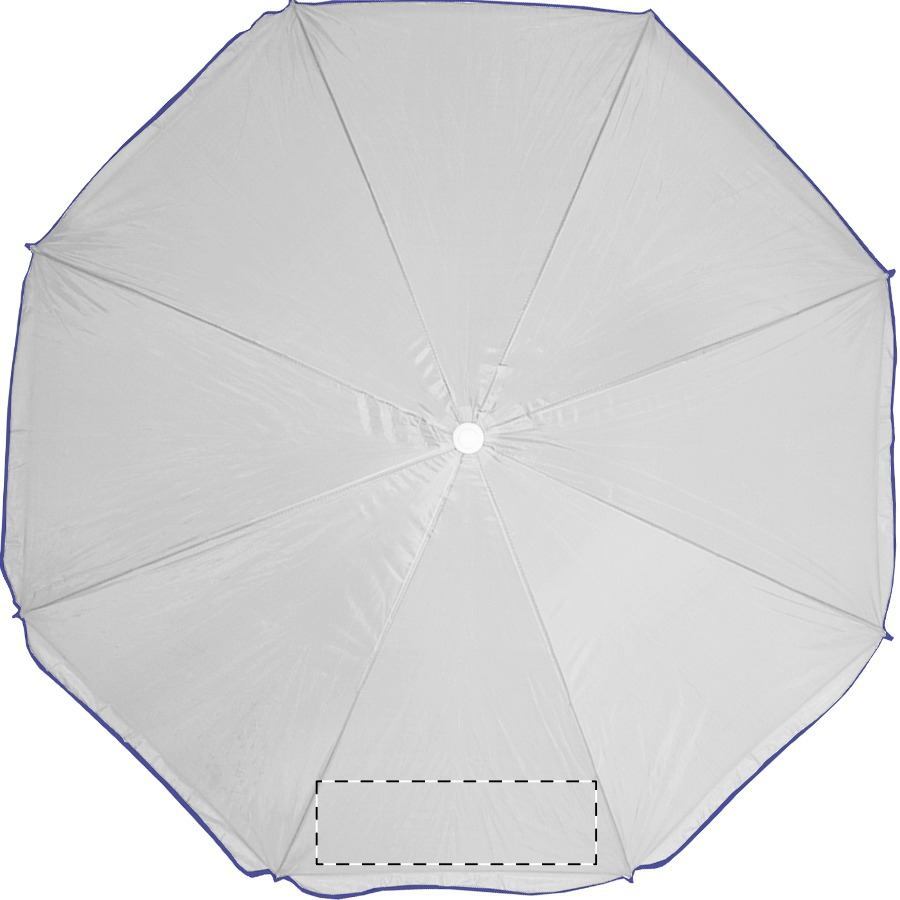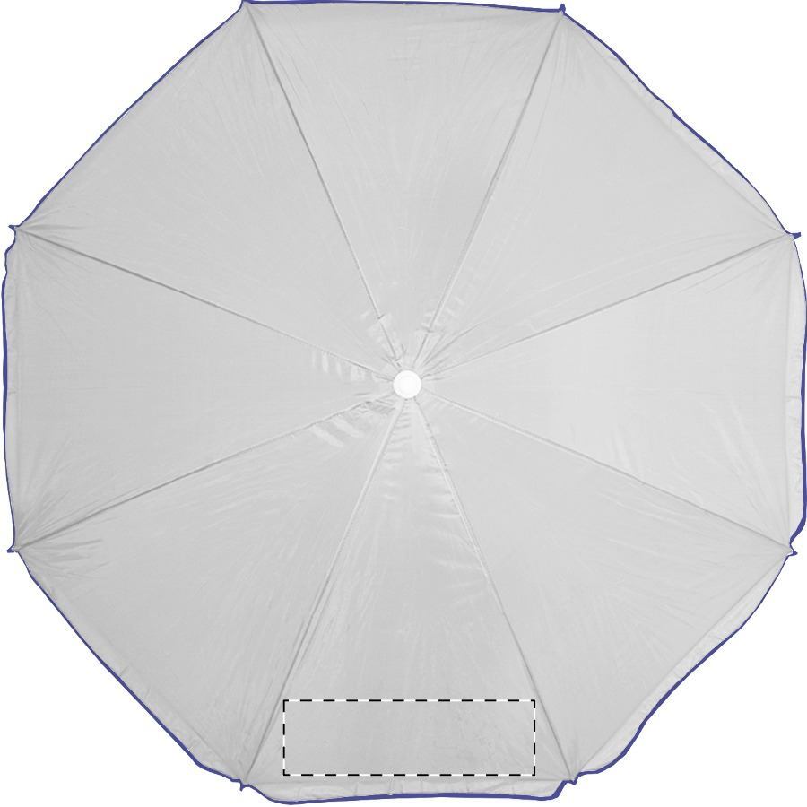 Ombrellone a 8 pannelli, con bordo colorato e bastone bianco in metallo. Materiale: nylon. TNT 70g.