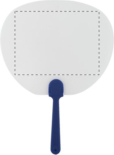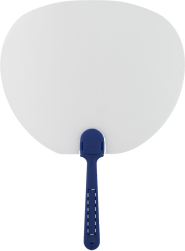 Ventaglio a mano in plastica trasparente di forma ovale.