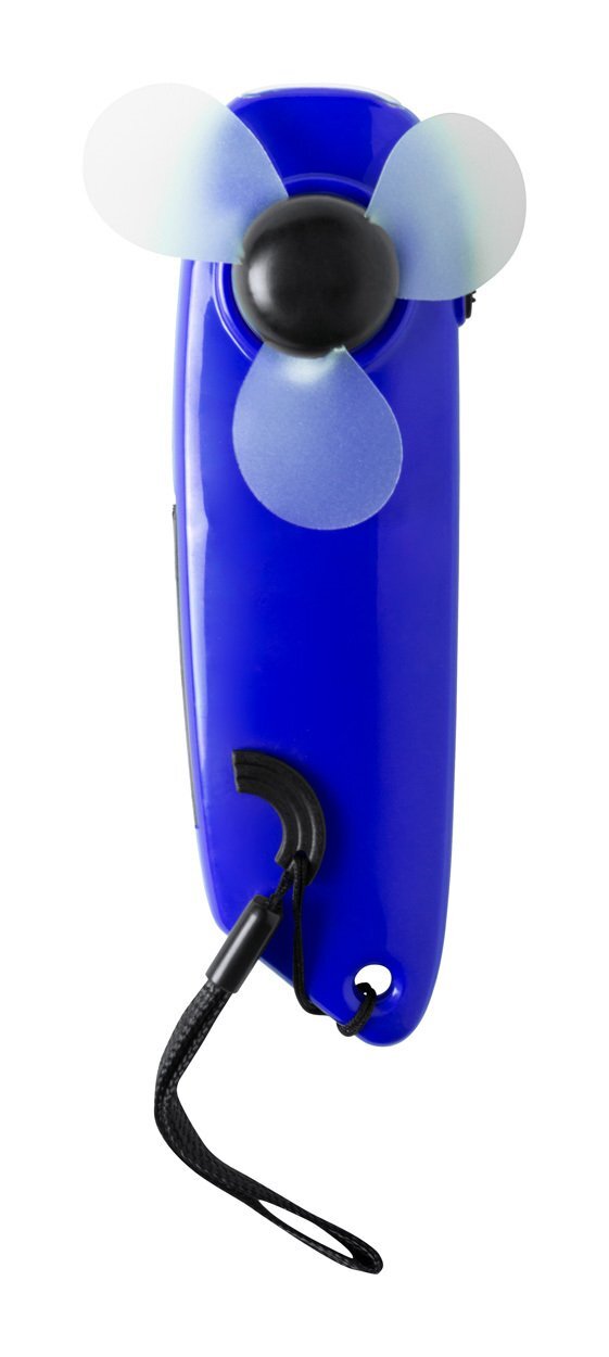 Ventilatore manuale in plastica con torcia a 2 LED. Con batteria a bottone.