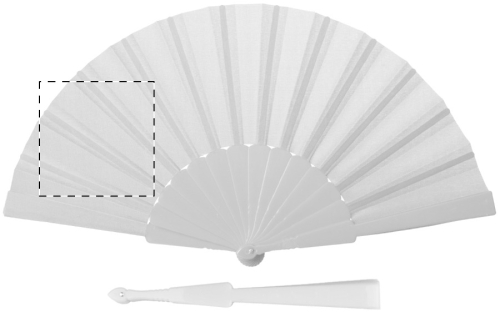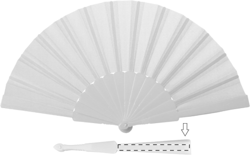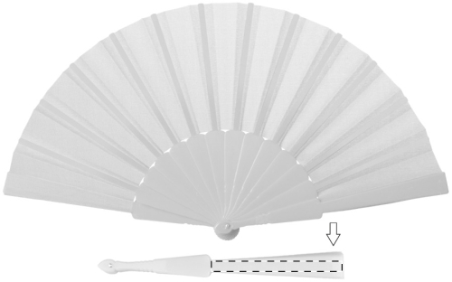 Ventaglio in tessuto con bastoncino in plastica.