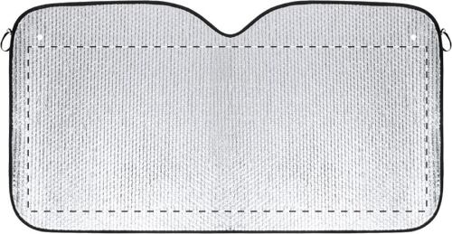 Parasole per auto in alluminio per parabrezza, con elastici per la chiusura. MOQ: multipli di 100 pezzi.