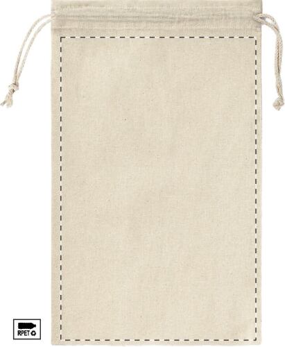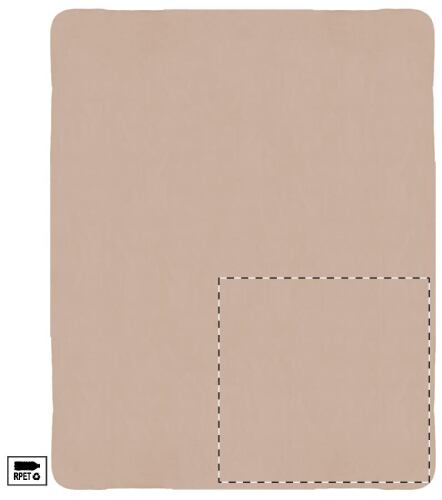 Coperta in pile di poliestere RPET (200 g/m²) in colore naturale, con custodia in 100% cotone ed etichetta RPET.