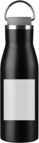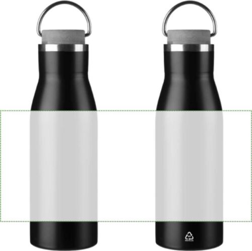 Borraccia in acciaio inox riciclato, doppia parete, appo a vite in bambù, anello per il trasporto, interno in acciaio inox 304 ed esterno in acciaio inox 201, include il logo “acciaio inox riciclato” sulla borraccia, confezionata singolarmente in una scatola in cartone avana, capacità 500 ml