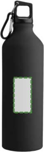 Borraccia in alluminio con moschettone, finitura opaca, tappo nero con dettagli colorati, capacità 800 ml, utilizzabile solo per acqua fredda