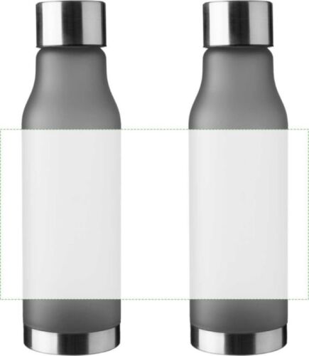 Borraccia in rPET, tappo e fondo in acciaio inox 201, finitura in gomma, aspetto smerigliato, confezionata in carta velina protettiva, capacità 600 ml