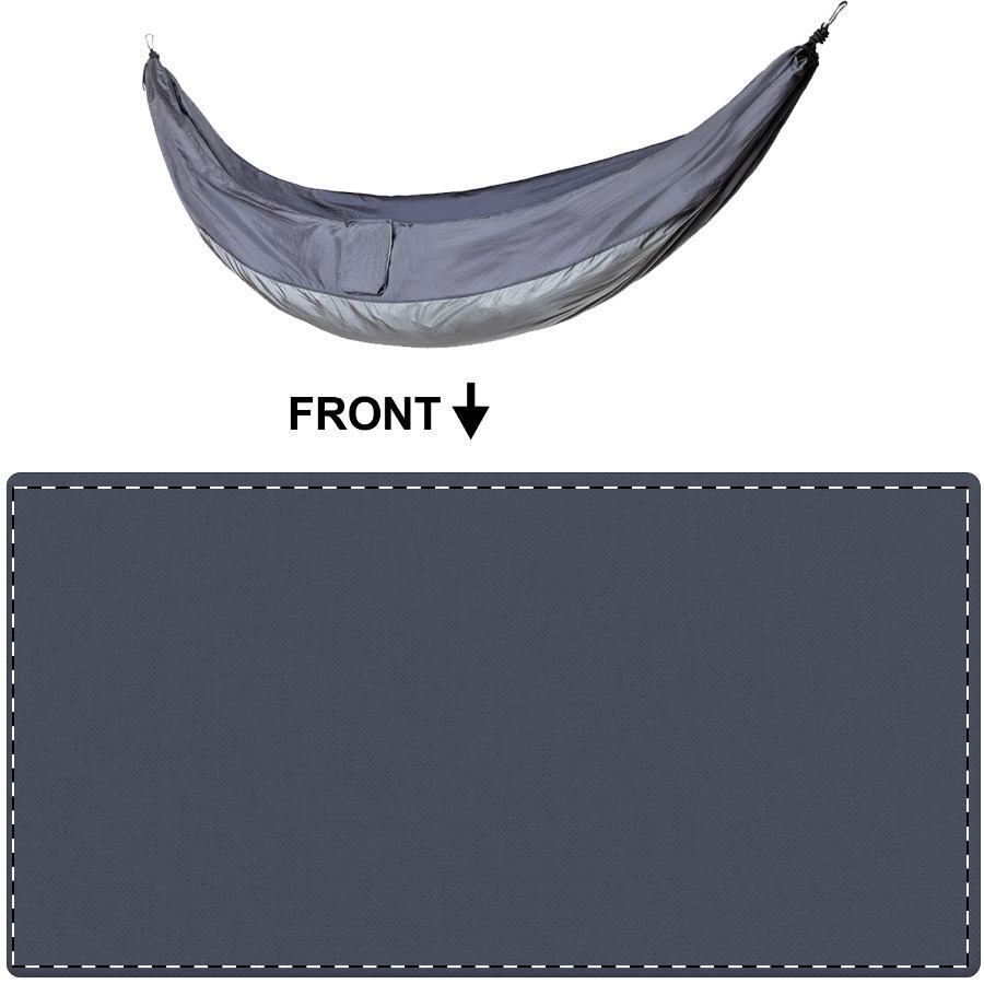 Amaca leggera in nylon riciclato completa di comoda custodia in colore coordinato e chiusura a strozzo. Include cinghie di sospensione e moschettoni. Limite di peso: 200 kg.