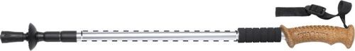 Bastone telescopico per nordic walking con corpo in alluminio, impugnatura ergonomica in sughero naturale, cinturino da polso e sistema antishock. Con cestino per la neve contenuto in una custodia in tessuto non tessuto.