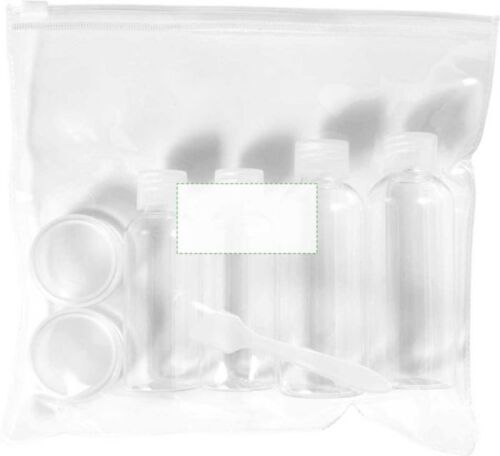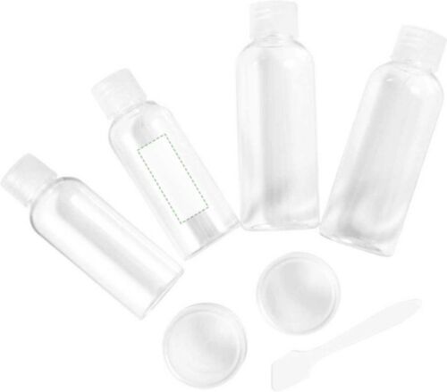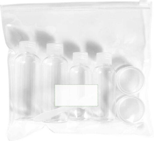 Kit da viaggio per cosmesi, comprende 2 bottiglie da 100 ml, 2 bottiglie da 50 ml, 2 contenitori da 10 ml e 1 paletta, in PETG
