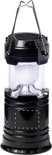 Lanterna da campeggio a energia solare con 7 LED. Funzione power bank incorporata con batteria da 1200 mAh e porta di ricarica USB.