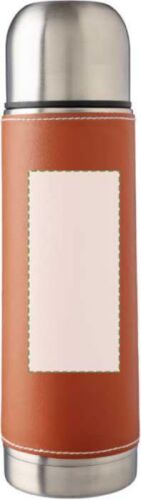 Thermos in acciaio inox 304, doppia parete, custodia protettiva esterna removibile in PU, confezionata singolarmente in una scatola in cartone avana, capacità 400 ml