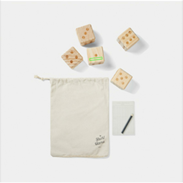 Il gioco dello yacht è il classico gioco di dadi perfetto per le belle giornate all'aperto. Lo scopo del gioco è ottenere il punteggio più alto possibile lanciando e combinando i dadi in modi diversi. Il gioco è facile da imparare e può essere giocato da tutte le età. Sono inclusi 5 dadi di 7x7x7 cm, un blocco per appunti e una matita. Confezionato in un astuccio di cotone. Manuale incluso. Tutte le parti in legno sono realizzate con legno di pino di alta qualità certificato FSC®, per garantire che il legno provenga da foreste gestite in modo responsabile.