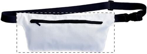 Marsupio da corsa in poliestere con fascia elastica regolabile in vita e tasca con zip; personalizzabile con grafica stampata in sublimazione su tutta la superficie. MOQ: 50 pezzi.