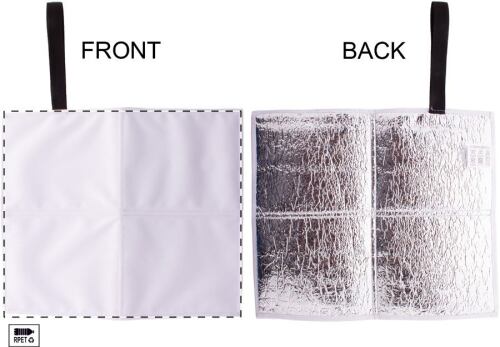 Cuscino da stadio pieghevole in poliestere 600D RPET, con fondo in alluminio isolante e grafica stampata in sublimazione sul lato anteriore. MOQ: 50 pezzi.