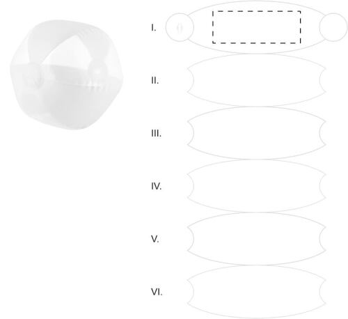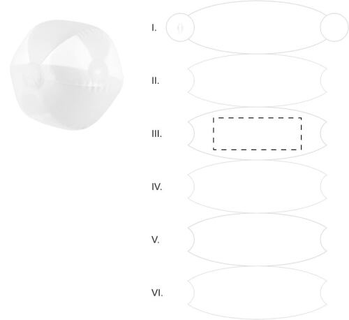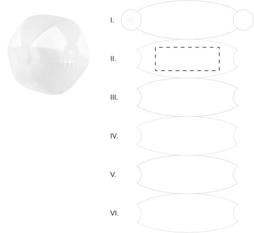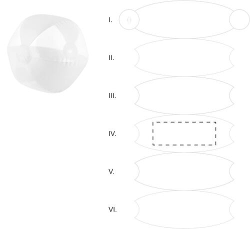 Pallone da spiaggia 6 pannelli in PVC. Dimensione sgonfiato: 400 mm.