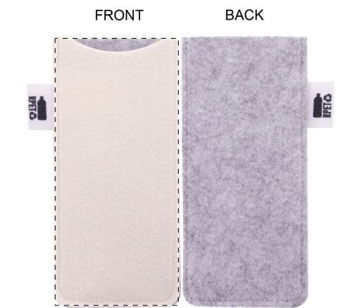 Custodia per occhiali da sole in feltro RPET personalizzabile sul lato anteriore con stampa a colori ed etichetta RPET. Il prezzo comprende la stampa in sublimazione. MOQ: 50 pezzi.