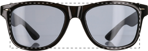 Occhiali da sole in plastica con protezione UV 400 ed astine personalizzabili con resina epossidica. Il prezzo include la stampa con resina epossidica sulle astine. MOQ: 100 pz.