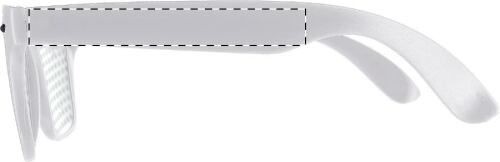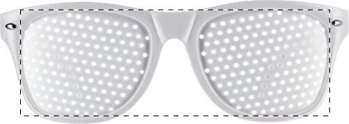 Occhiali da festa in plastica con lenti a rete e finitura opaca.