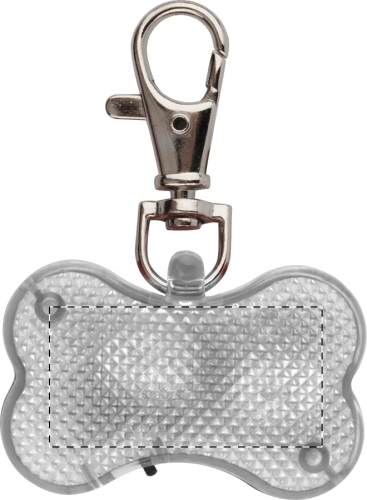 Luce di sicurezza per animali domestici a forma di osso con LED lampeggiante. Batterie a bottone incluse.