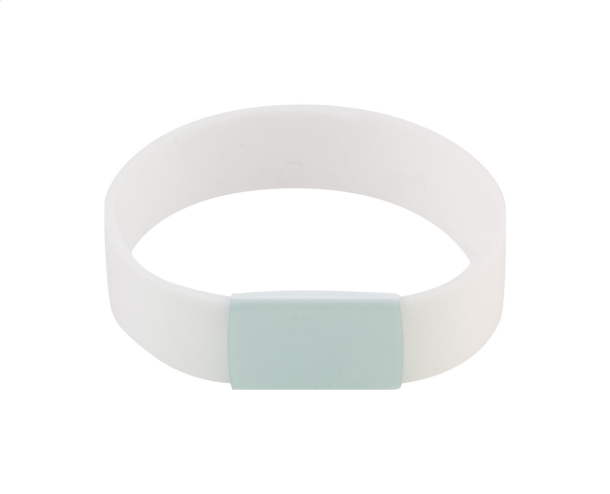 Bracciale in silicone con piastrina in metallo.