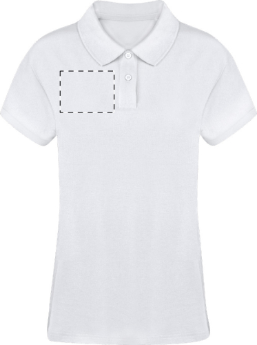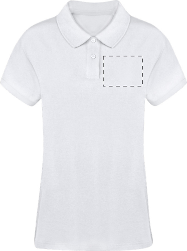 Polo da donna in piqué bianco con due bottoni in colore coordinato. 100% cotone ringspun, 220 g/m².