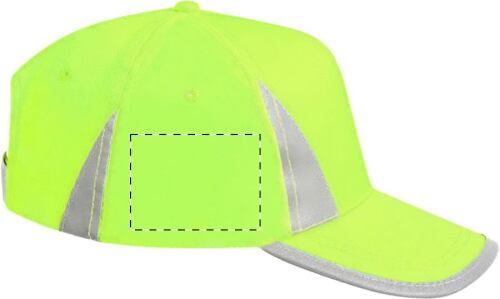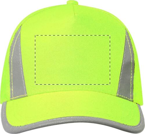 Cappellino in microfibra riflettente a 5 pannelli con chiusura in velcro.