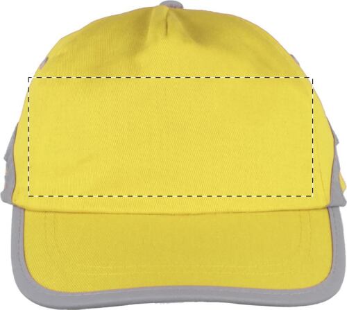 Cappellino da baseball in cotone con fascia alta visibilità e chiusura in velcro.
