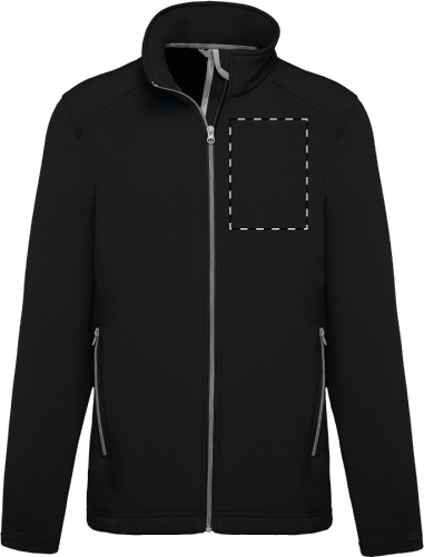 Giacca in softshell a doppio strato con tasche laterali chiuse da cerniera. Con cerniere a contrasto e tessuto idrorepellente. Esterno: 95% poliestere e 5% elastan. Interno: 100% poliestere micropile. 300 g/m². Prodotto a marchio Kariban.