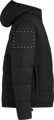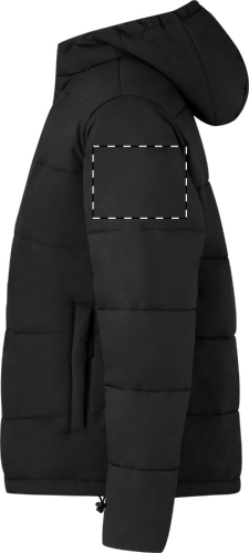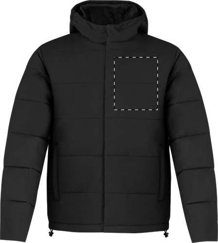 Giacca parka imbottita in 100% poliestere, resistente al vento e all'acqua, con doppia chiusura frontale a cerniera e bottoni. Con cappuccio e tasche laterali.